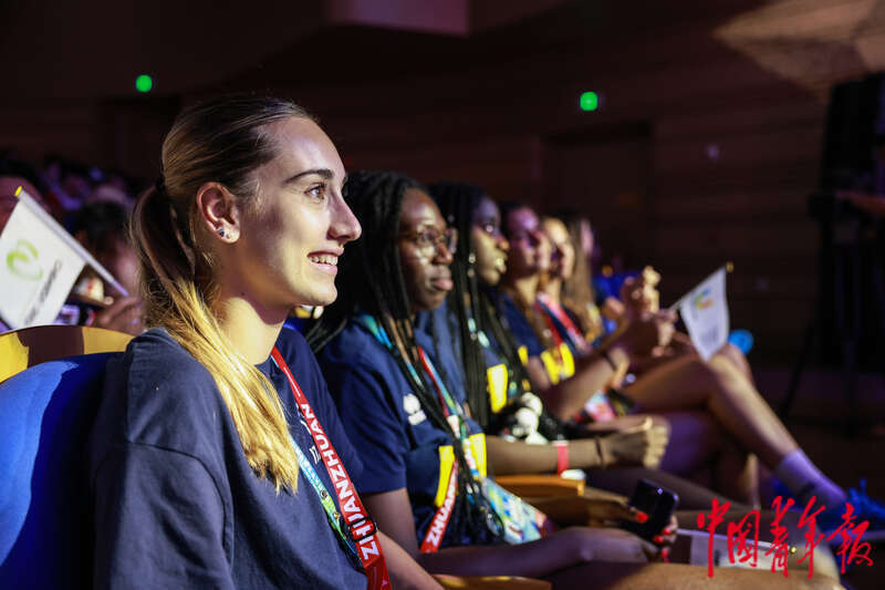 7月29日,四川成都,大运村开通员联欢会上,台下的列国开通员。中青报·中青网记者 曲俊燕/摄